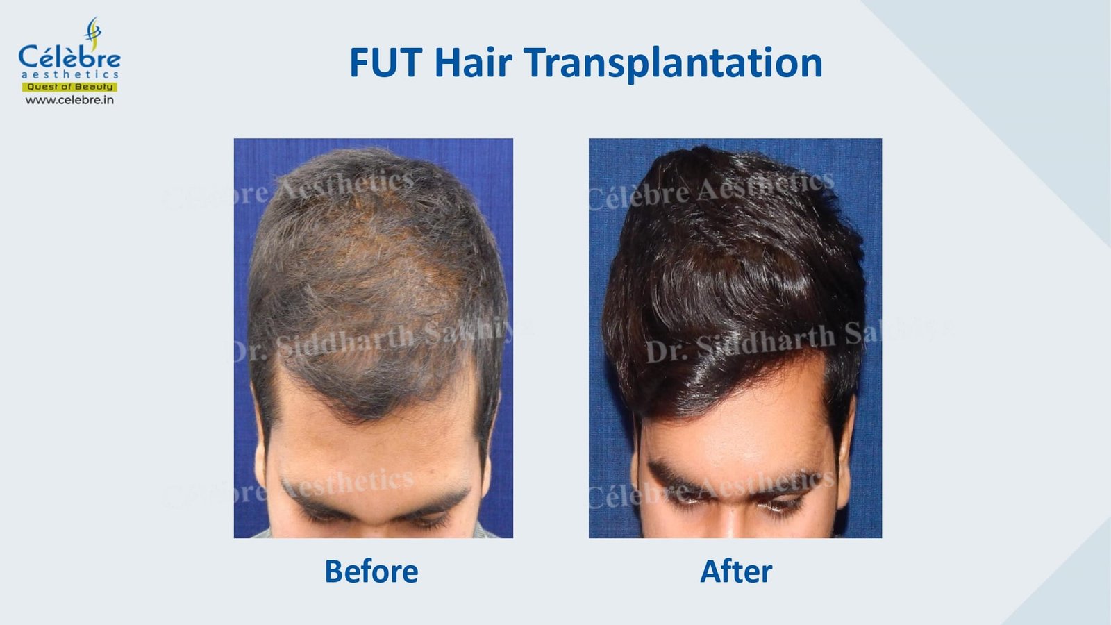 In FUT hair transplant surgery, an appropriately sized strip of skin containing hairs with intact roots is harvested from back and side of the head and resulting area is closed carefully by meticulous Plastic surgery suturing under magnification to give least conspicuous scar in this area. Individual grafts (follicular units) are being separated from this strip of skin under magnification and implanted in the same way as FUE inside micro slits.We use Carl Zeiss 4x magnification loupes in harvesting skin strip to avoid damage to follicles at the donor site and to make suturing meticulous.Another important thing to give the best result is to reduce ischemia time (time during which hair roots remain outside body-before implantation). We make micro-slits on recipient area before harvesting strip, which increase survival of hair more than any other technique.